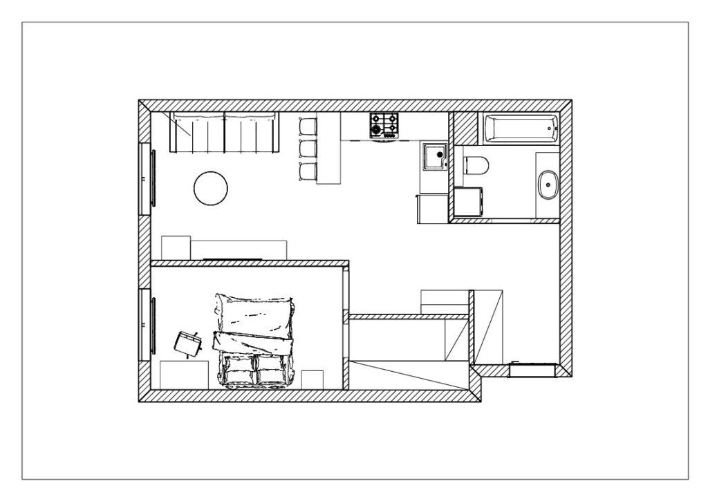 - wizualizacje pomieszczeń w formie czarno-białych szkiców, które pozwolą Ci zobaczyć projektowane wnętrza w przestrzeni 3d